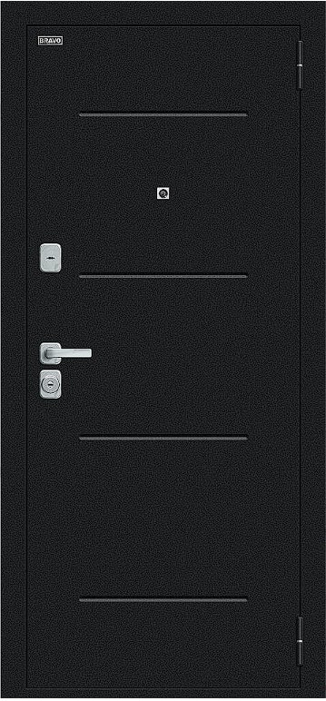 Надежная входная Дверь Браво Техно/BChrome Букле черное/Bianco Melinga премиум класса по цене 30 500 руб. Большая толщина стали защитит от проникновения в ваш дом, квартиру или коттедж. Используется очень качественная фурнитура: замки, цилиндры, ручки, защелки. Покрытие и отделка двери изготовлено под внимательным контролем производителя. Дверь имеет долгий срок службы и гарантию.